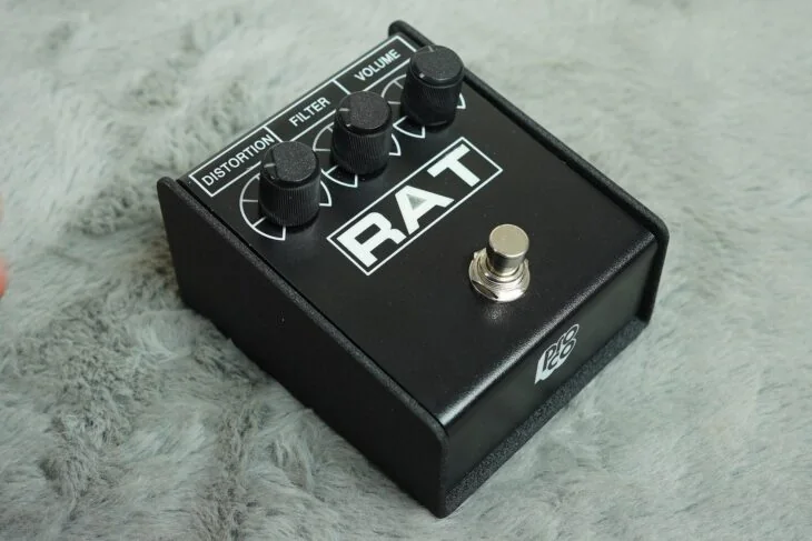 In the case you’re using a cleaner amp, make sure to add a distortion pedal, which can be a Pro Co RAT 2 with the “Distortion” and “Volume” knobs all the way up.