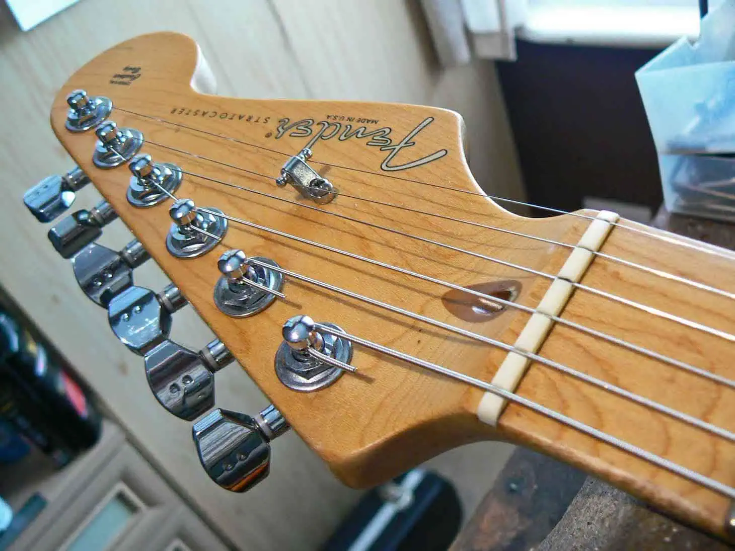 After doing any maintenance and cleaning the guitar, it is now ready for some new strings. Many places, like Guitar Center, will put on a standard set of strings for free as a part of the guitar setup.