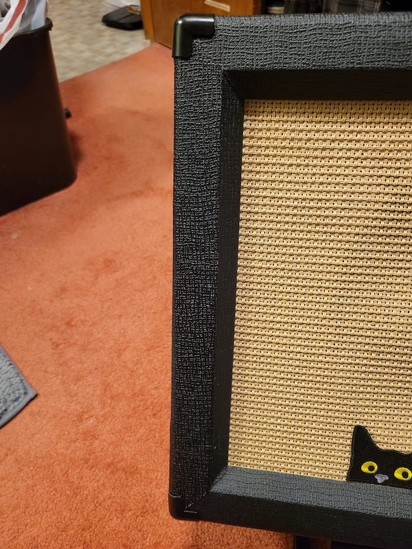 I, therefore, don’t recommend trying to clean the fabric yourself. If it’s heavily stained, perhaps consider having the amp re-covered.