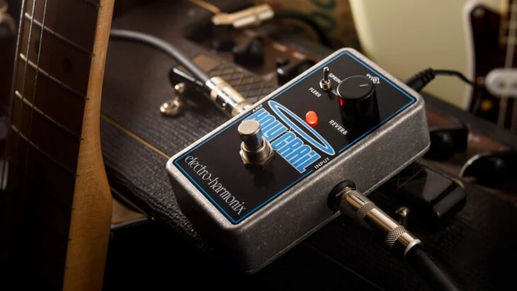 From the Dyna Comp, Mark goes into a pedal hidden under psychedelic cloud stickers but it’s another easy-to-get pedal, an Electro-Harmonix Holy Grail reverb pedal. He sets it between noon and one o’clock. The reverb and the compressor always stay ON.