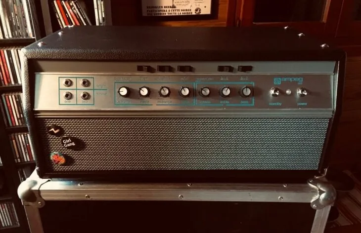 The amp was modded for KT-90 tubes (rather than the stock EL34 tubes). For this reason, I’d avoid getting a Hiwatt amp: Krist’s Hiwatt wasn’t really a Hiwatt-style amplifier.