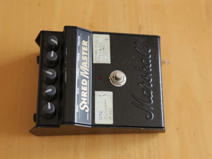 The key distortion pedal for the early Radiohead tone is the Marshall Shredmaster.