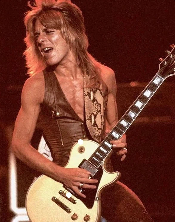 The enduring image of Randy in my head is his white Gibson Les Paul Custom. Randy Rhoads was so diminutive that this guitar looked huge on him!