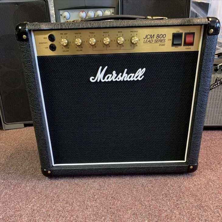 The Marshall Studio Classic combo is, in my opinion, the best JCM800-style tone in a combo amp. At 20 (or 5) watts of switchable power, it’s loud enough to keep up with a drummer at rehearsal or in a packed club, although it is a touch too loud for simple apartment practice.